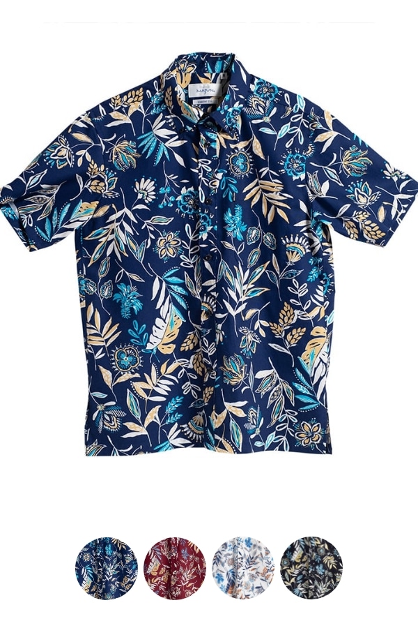 当初は和柄が多く見られましたが、現在のアロハシャツといえば、南国を思わせるモチーフが描かれています。